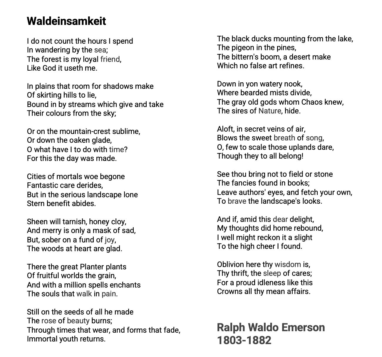 5. Waldeinsamkeit. “The feeling of solitude and connectedness to nature when being alone in the woods.” As captured by Ralph Waldo Emerson in 1858:
